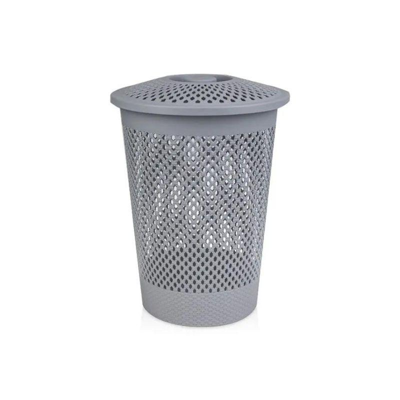 Panier à Linge en Plastique avec Couvercle et Roues – 65L – Gris