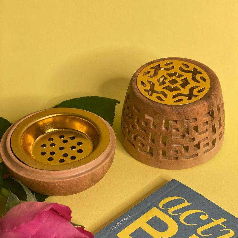Bruleur Encens Métal Socle en Bois